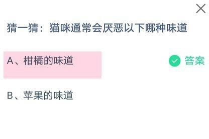 问题:猜一猜:猫咪通常会厌恶以下哪种味道
