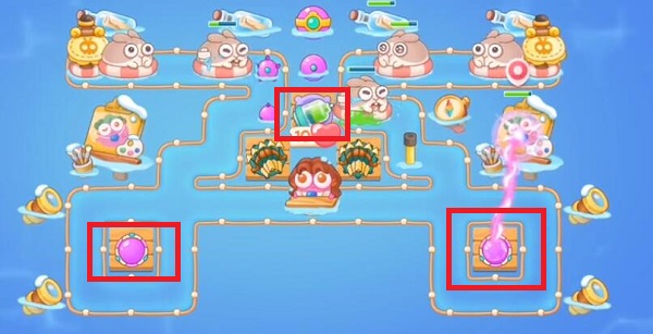 4、在上面和旁边两侧可以放水雷炮,布局如下图,无伤全清通关。
