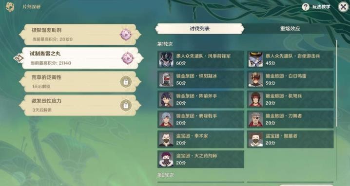 原神片剂深研第二天怎么过?目前原神3。版本又开启了新的活动,也就是片剂深研活动,活动时间是:2022/09/15 10:00 ~ 2022/09/26 03:59,每两天解锁一个新的挑战,总共4个。下面为大家带来的是活动第二天的攻略,希望可以帮助到各位玩家通关。